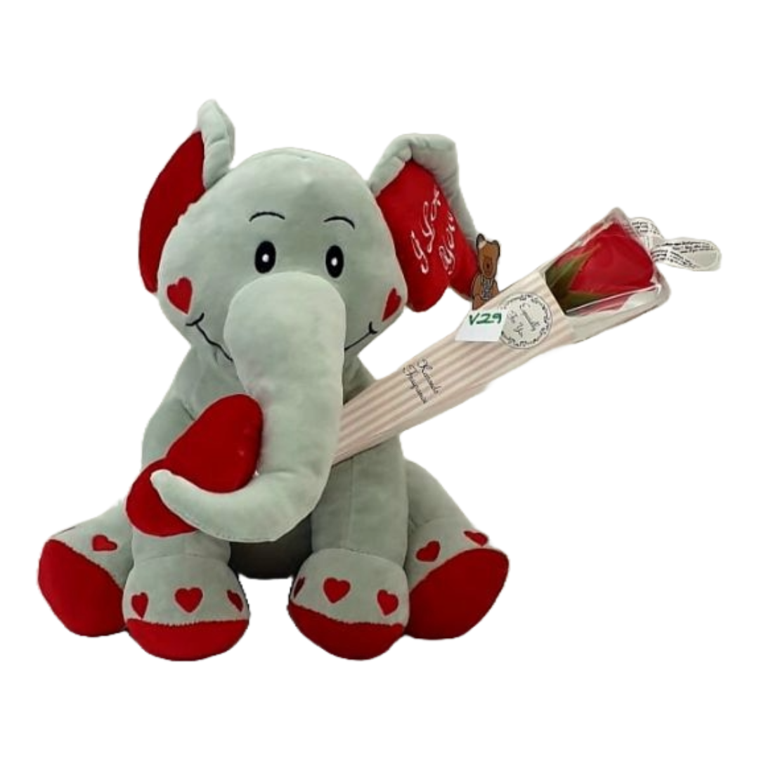 Includes Plush Elephant with a red soap rose